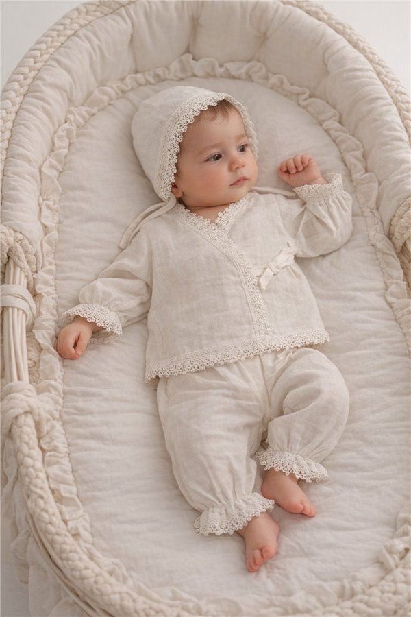 0-3 Ay 3'Lü Müslin Zıbın Takım Bej