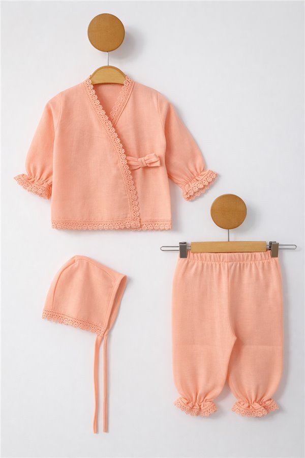 0-3 Ay 3'Lü Müslin Zıbın Takım Somon