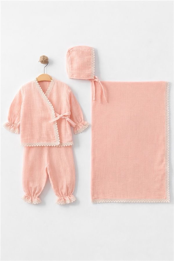 0-3 Ay 4'Lü Müslin Zıbın Takım Somon