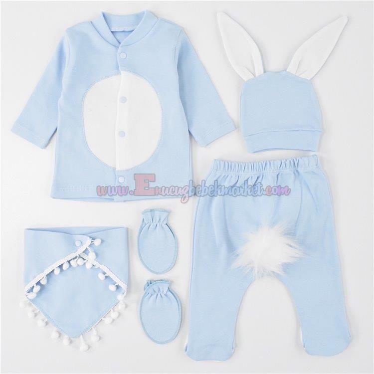 0-3 Ay 5 Parça Zıbın Takım Ponponlu Tavşan Mavi