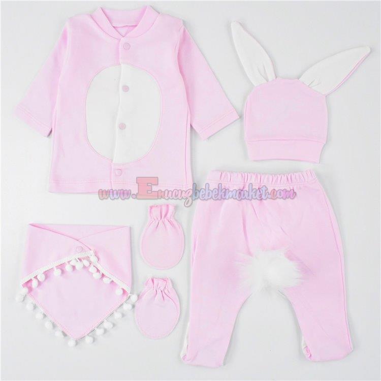 0-3 Ay 5 Parça Zıbın Takım Ponponlu Tavşan Pembe