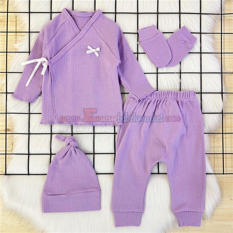0-3 Ay Fiyonklu 4'Lü Bebek Zıbın Takım Lila
