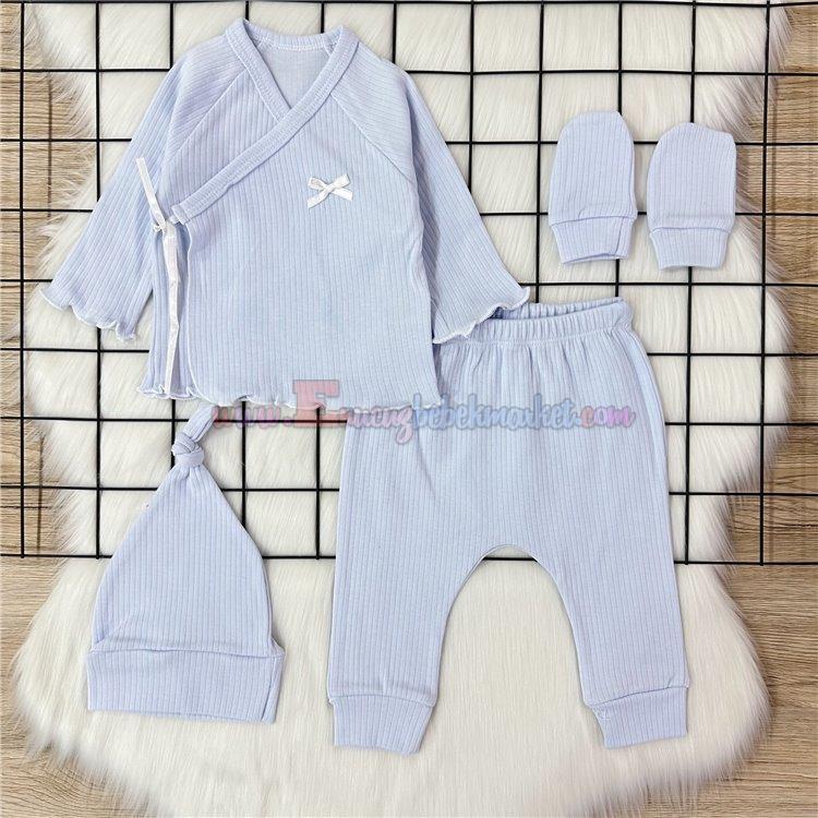 0-3 Ay Fiyonklu 4'Lü Bebek Zıbın Takım Mavi