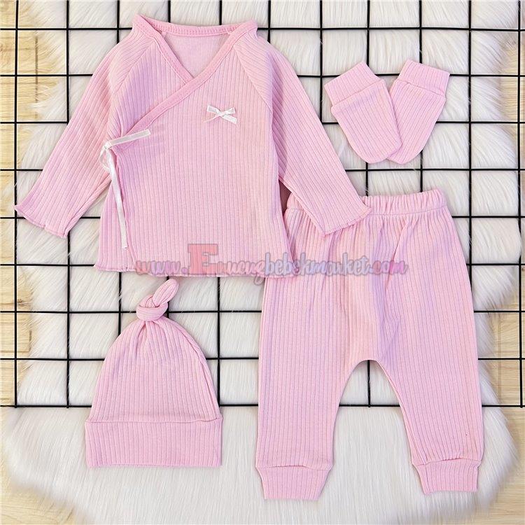 0-3 Ay Fiyonklu 4'Lü Bebek Zıbın Takım Pembe