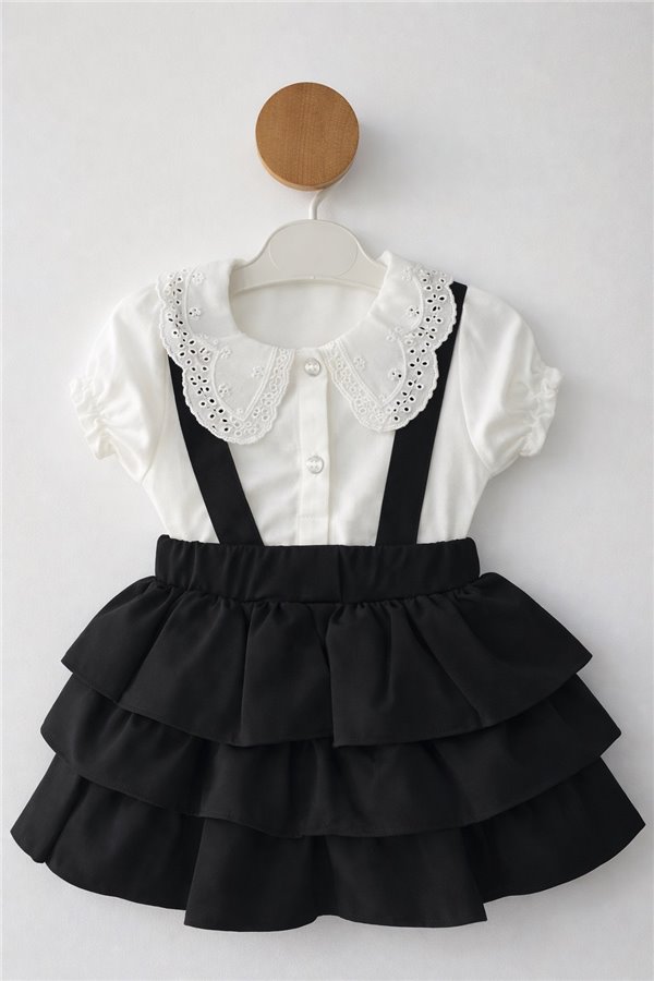 1-4 Yaş Kat Kat Fırfırlı Gömlekli Salopet Elbise Siyah