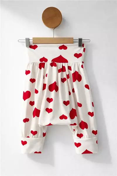 1-5 Yaş Kalp Desenli Kız Çocuk Şalvar Beyaz