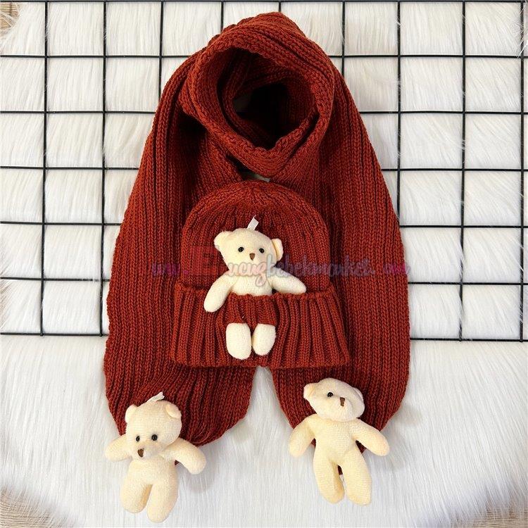 1-8 Yaş Ayıcıklı Atkı Bere Takım Kiremit