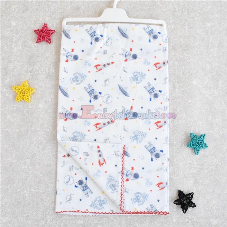 115X95 Cm Tek Kat Bebek Pazen Battaniye Astronot Desenli Mavi Kırmızı
