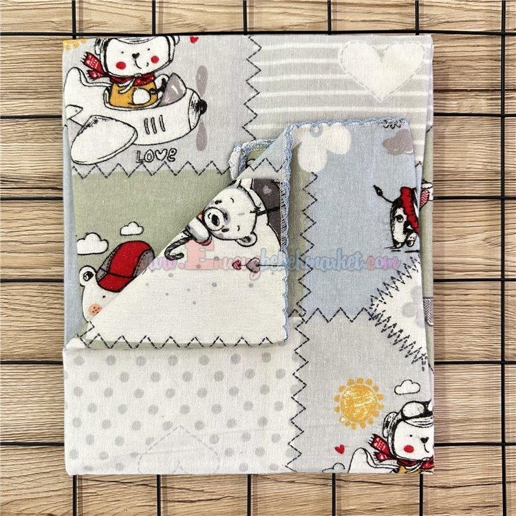 115X95 Cm Tek Kat Bebek Pazen Battaniye Ayıcıklı Model Yeşil Gri