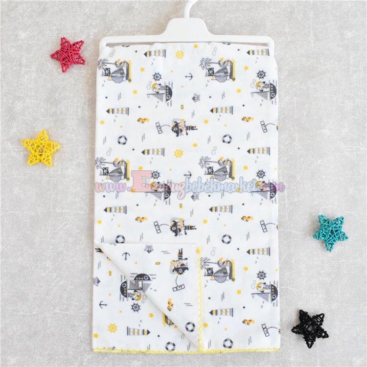 115X95 Cm Tek Kat Bebek Pazen Battaniye Denizci Desenli Sarı