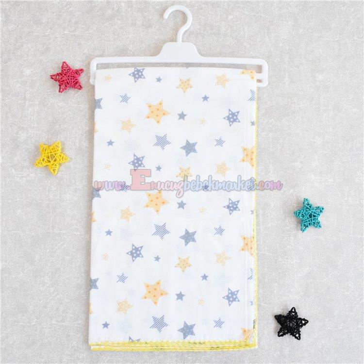115X95 Cm Tek Kat Bebek Pazen Battaniye Yıldız Desenli Sarı