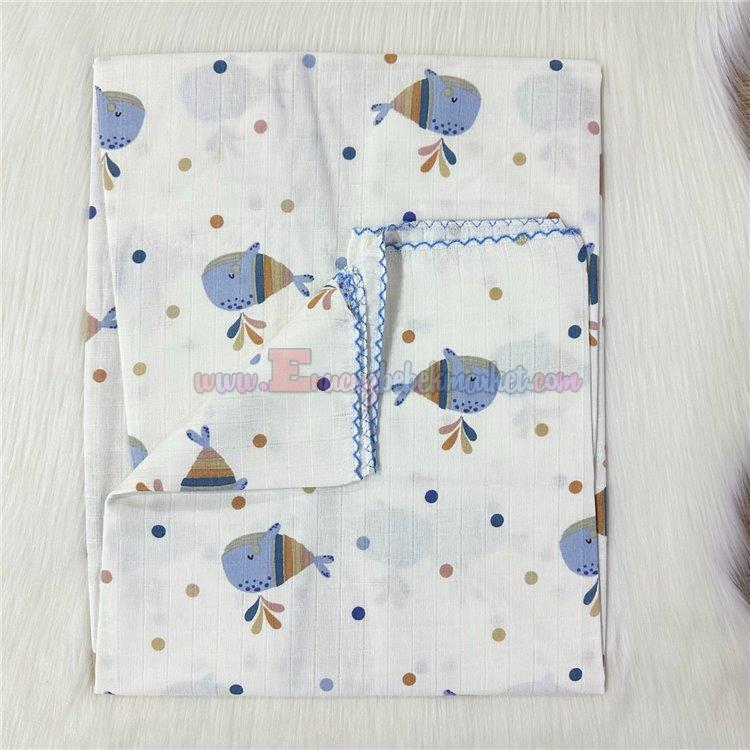 120X100 Cm Balık Desen Tek Kat Müslin Battaniye Mavi