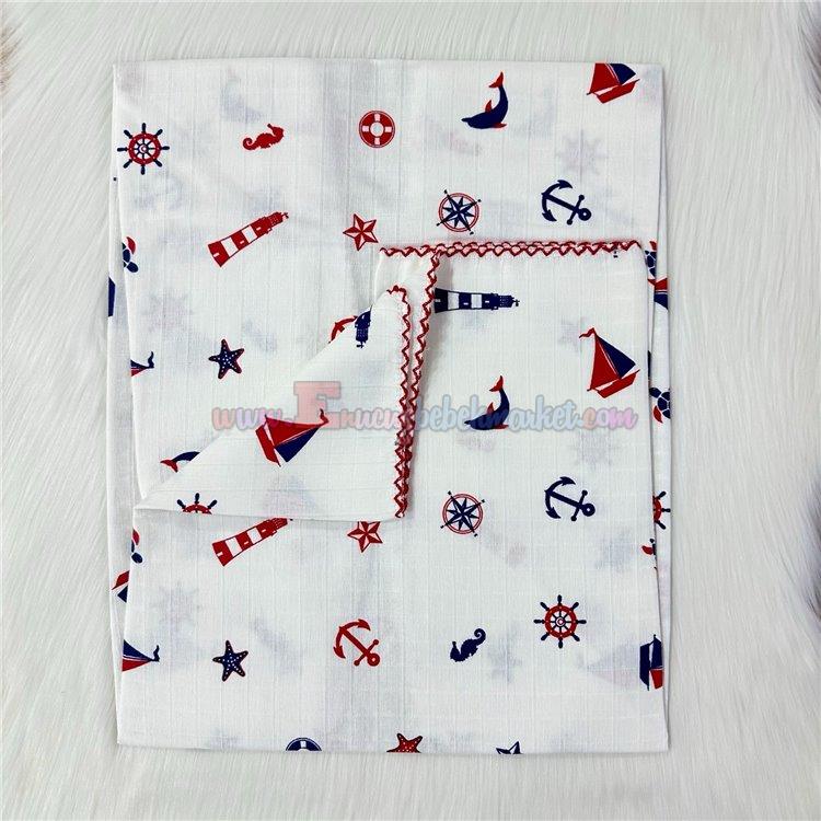 120X100 Cm Denizci Desen Tek Kat Müslin Battaniye Kırmızı