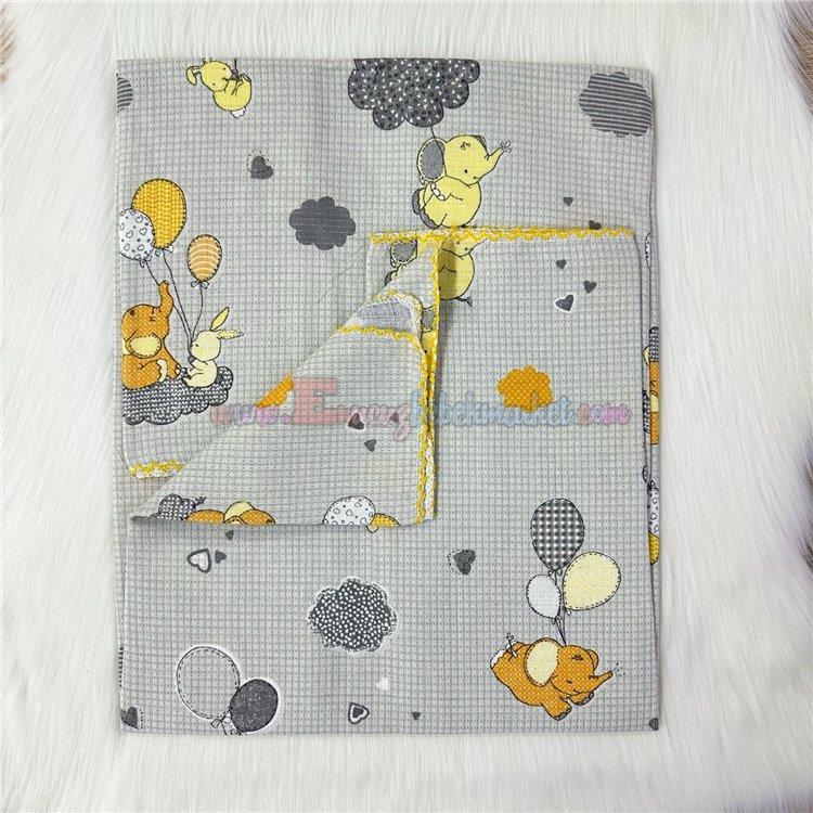 120X100 Cm Fil ve Tavşan Desen Tek Kat Müslin Battaniye Gri