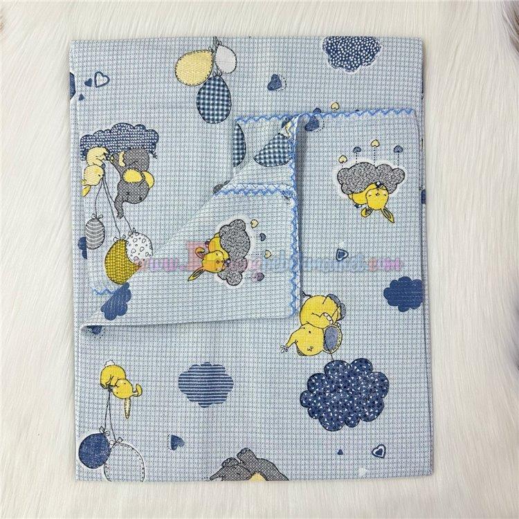 120X100 Cm Fil ve Tavşan Desen Tek Kat Müslin Battaniye Mavi