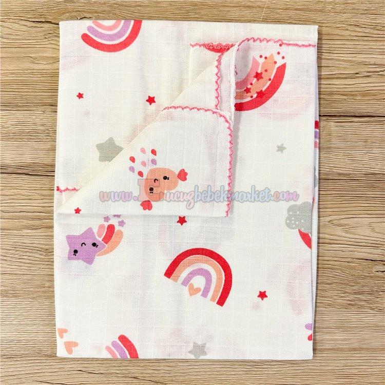 120X100 Cm Gök Kuşağı Desen Tek Kat Müslin Battaniye Pembe