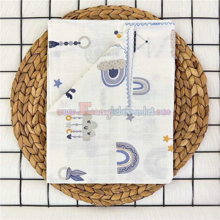120X100 Cm Gök Kuşağı Desenli Müslin Battaniye Mavi