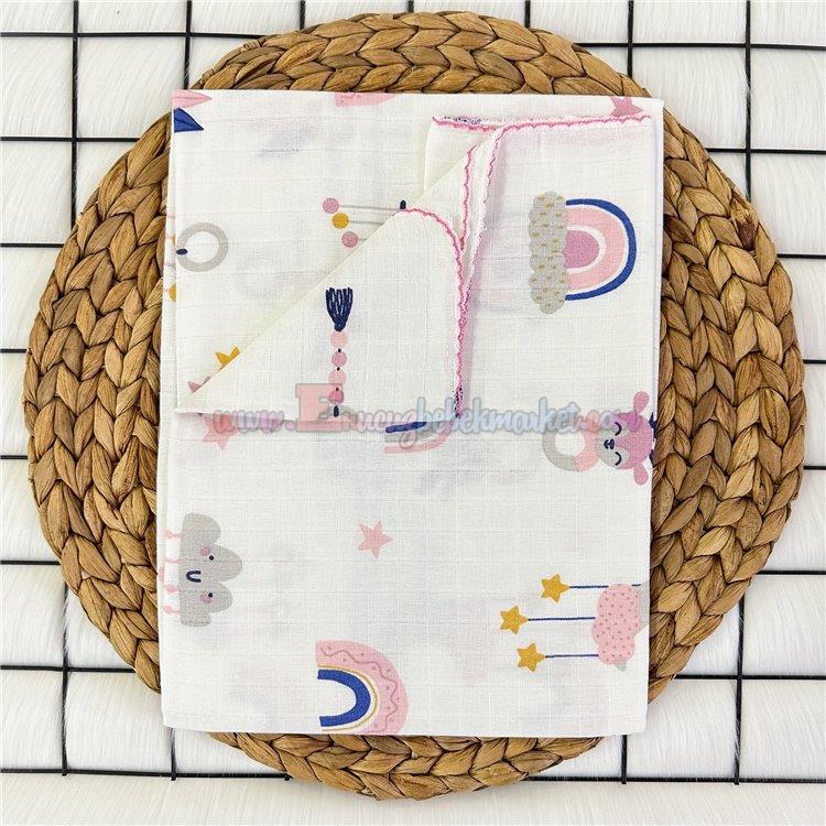 120X100 Cm Gök Kuşağı Desenli Müslin Battaniye Pembe