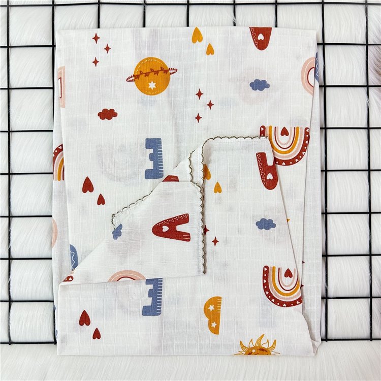 85X75 Cm Kalp Desen Tek Kat Müslin Battaniye Renkli Mavi