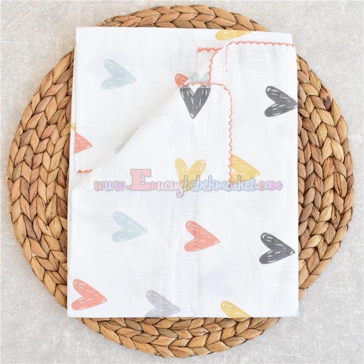 120X100 Cm Kalp Desen Tek Kat Müslin Battaniye Turuncu