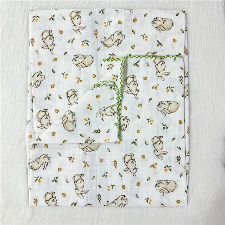 120X100 Cm Tavşan Desen Tek Kat Müslin Battaniye Yeşil