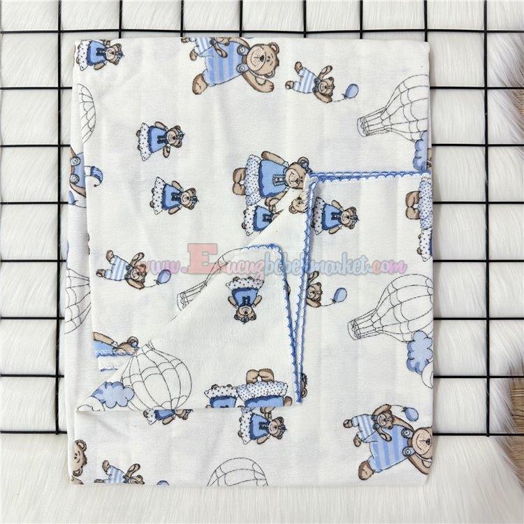 120X100 Cm Tek Kat Bebek Pazen Battaniye Ayıcıklı Model Mavi