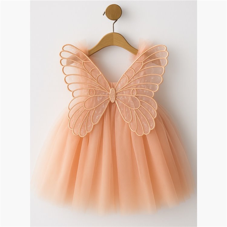 1-2-3-4-5 Yaş Kanatlı Kız Çocuk Elbise Somon