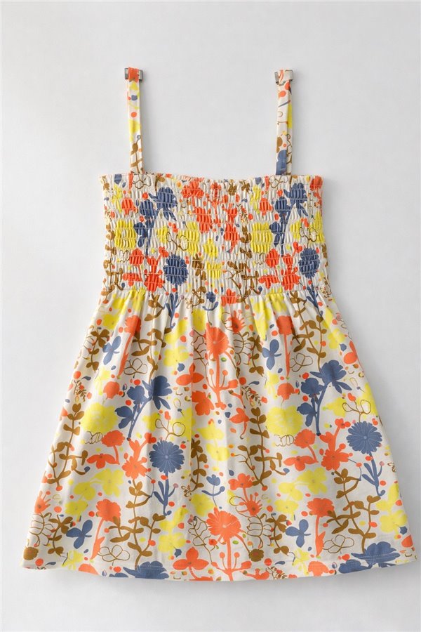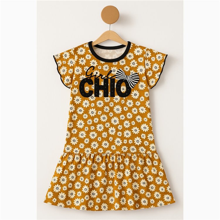 Byms 5-6-7-8-9 Yaş Chio Çiçekli Kız Çocuk Elbise Sarı
