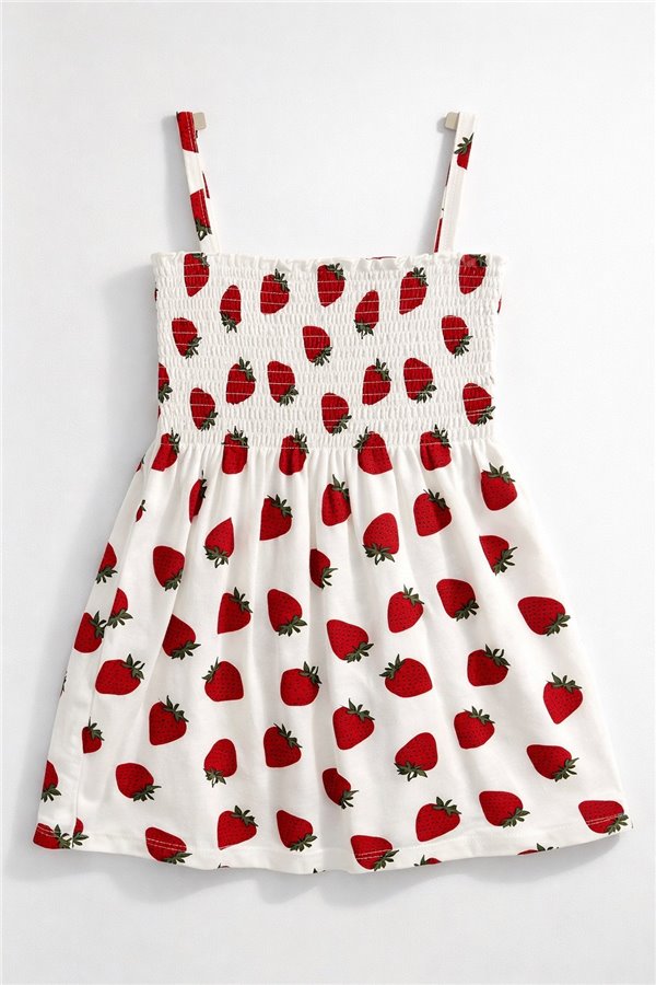 2-3-4-5 Yaş Gipeli İp Askılı Kız Çocuk Elbise Çilekli Model