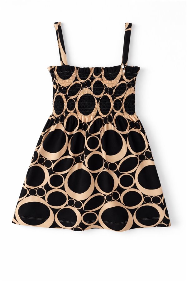 2-3-4-5 Yaş Gipeli İp Askılı Kız Çocuk Elbise Desenli Siyah