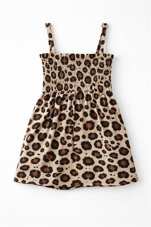 2-3-4-5 Yaş Gipeli İp Askılı Kız Çocuk Elbise Leoparlı Model