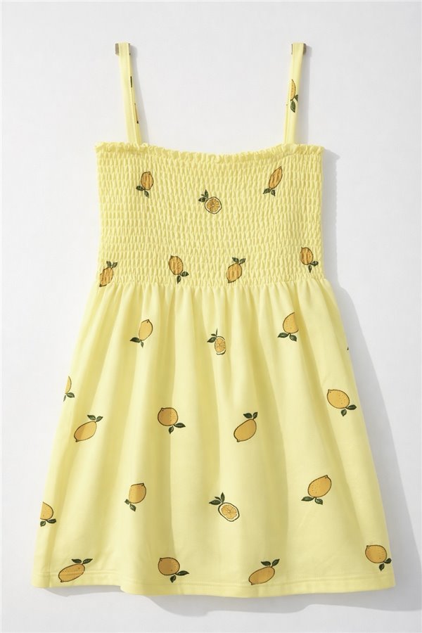 2-3-4-5 Yaş Gipeli İp Askılı Kız Çocuk Elbise Limonlu Sarı