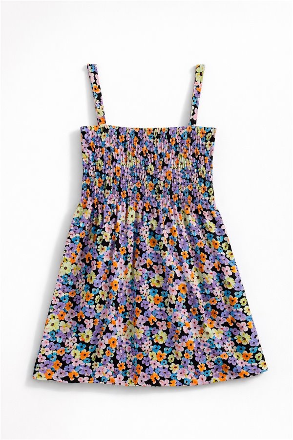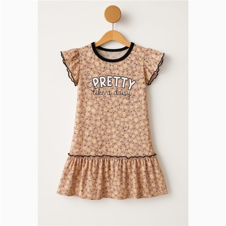 Byms 2-6 Yaş Pretty Çiçekli Kız Çocuk Elbise Pudra