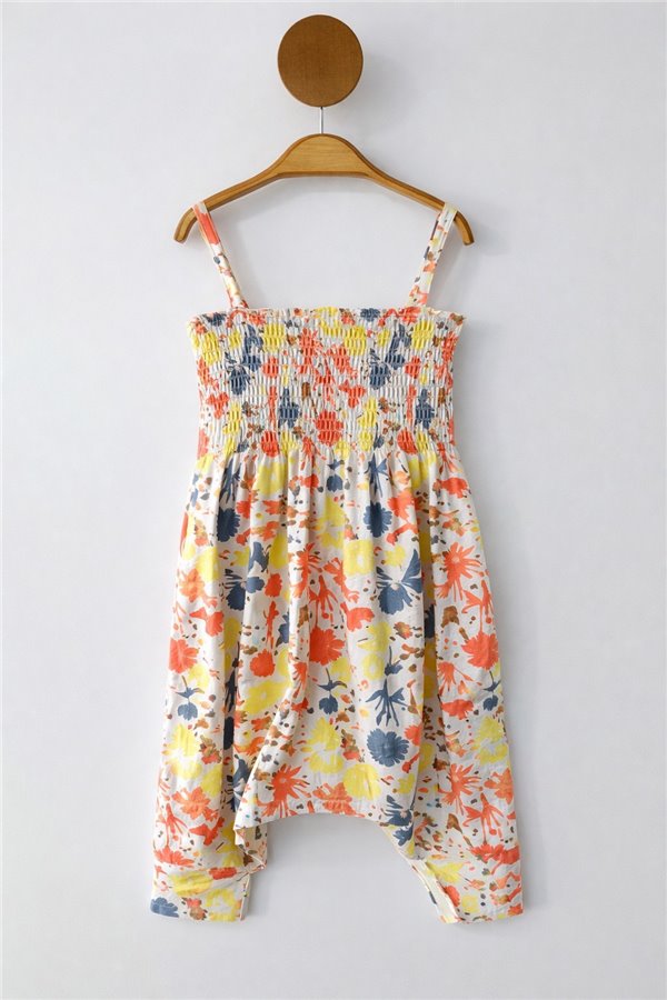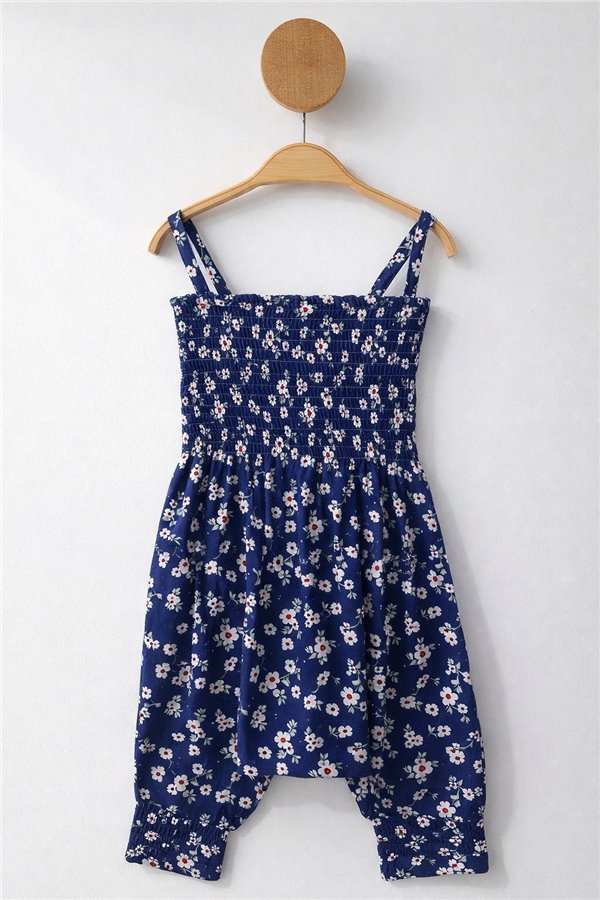 2-3-4-5 Yaş Gipeli İp Askılı Kız Çocuk Tulum Çiçekli Lacivert