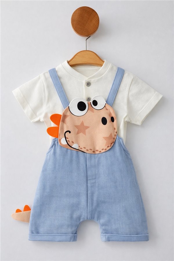 6-24 Ay Dinozorlu Erkek Bebek Salopet Tulum Mavi