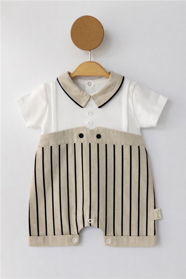 Mrt Baby 0-12 Ay Çizgili Bebek Tulum Bej