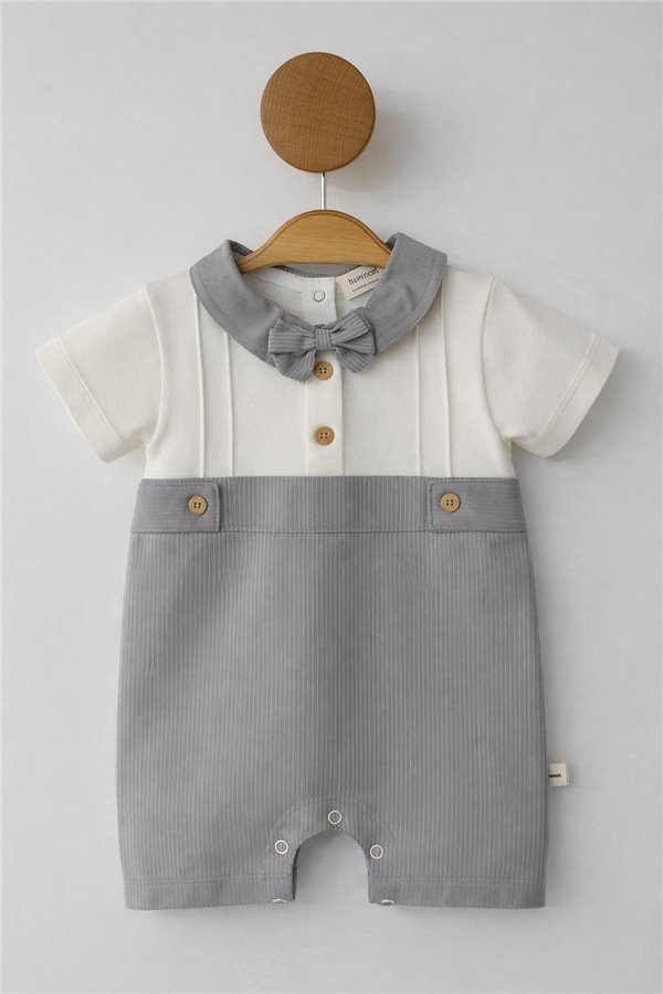 Mrt Baby 0-12 Ay Papyonlu Bebek Tulum Gri