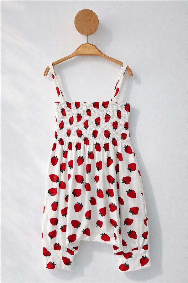 2-3-4-5 Yaş Gipeli İp Askılı Kız Çocuk Tulum Rengarenk Çiçekli