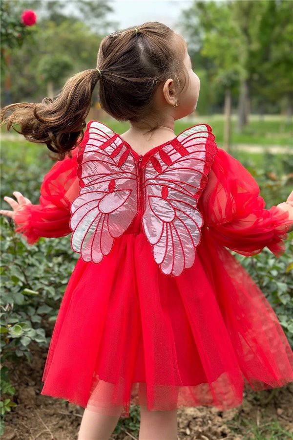 2-5 Yaş Kanatlı Kız Çocuk Elbise Uzun Kol Model Pembe