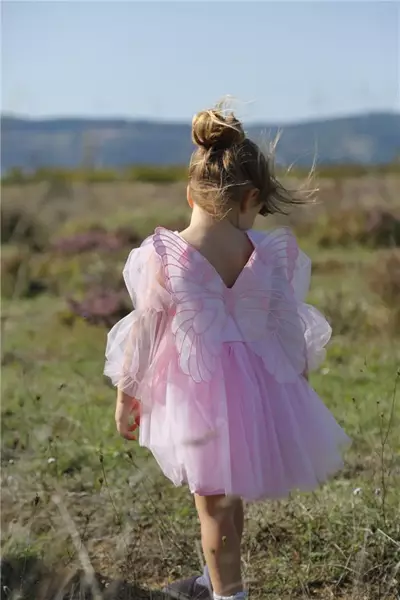 2-5 Yaş Kanatlı Kız Çocuk Elbise Uzun Kol Model Gül Kurusu