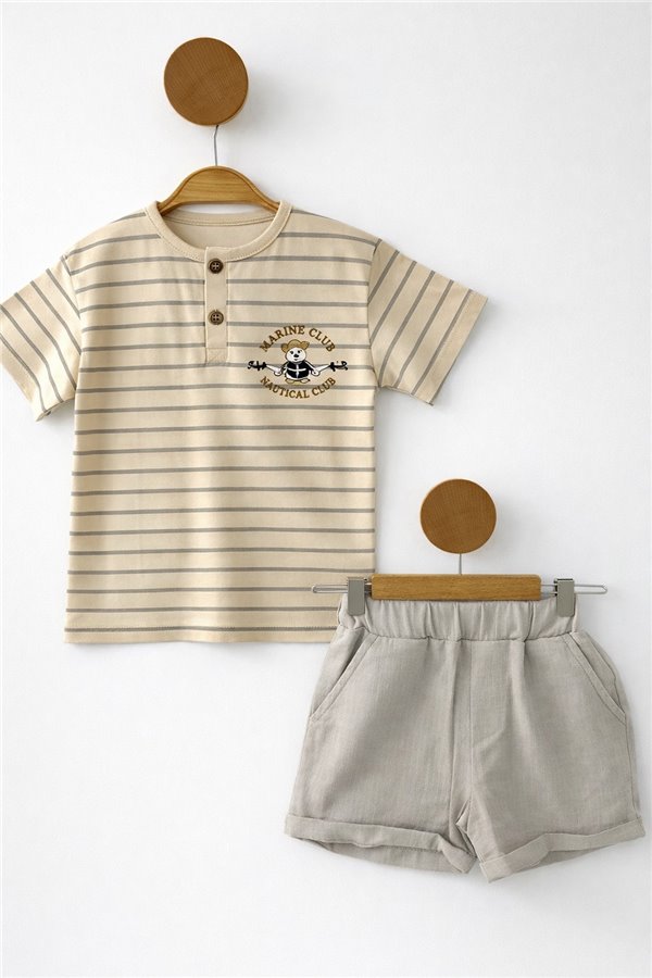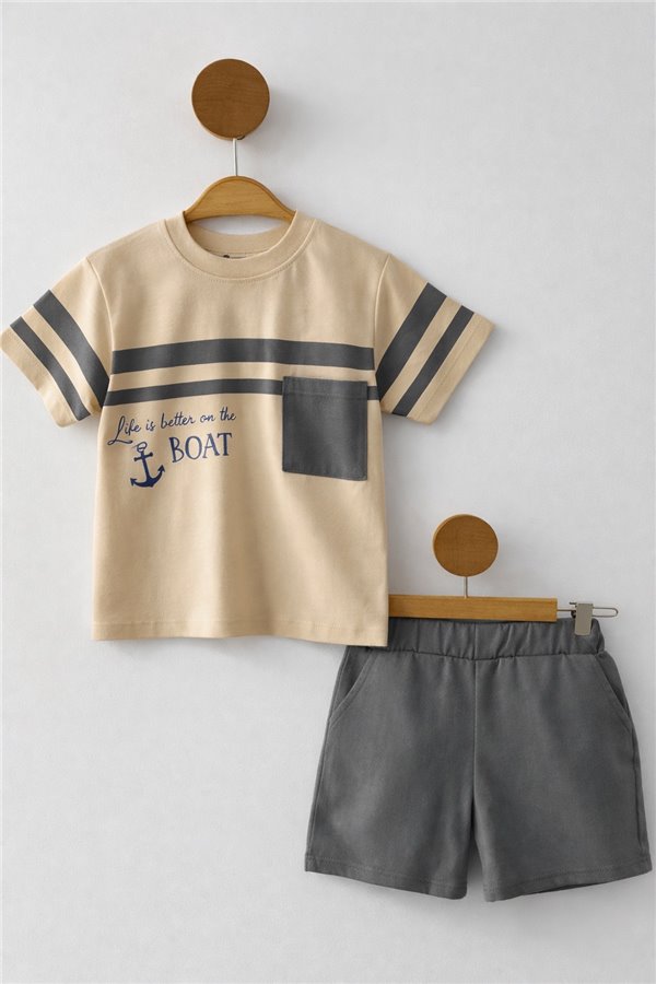 2-9 Yaş Yazlık Erkek Çocuk Takım Beach Baskılı Bej