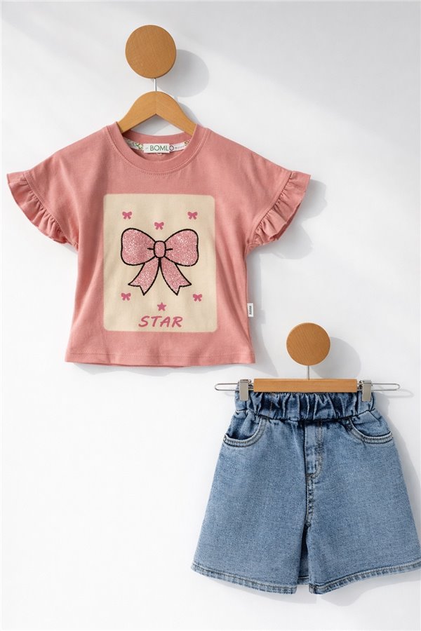 Deco 2-6 Yaş Kız Çocuk Fiyonklu Yazlık Takım Gül Kurusu