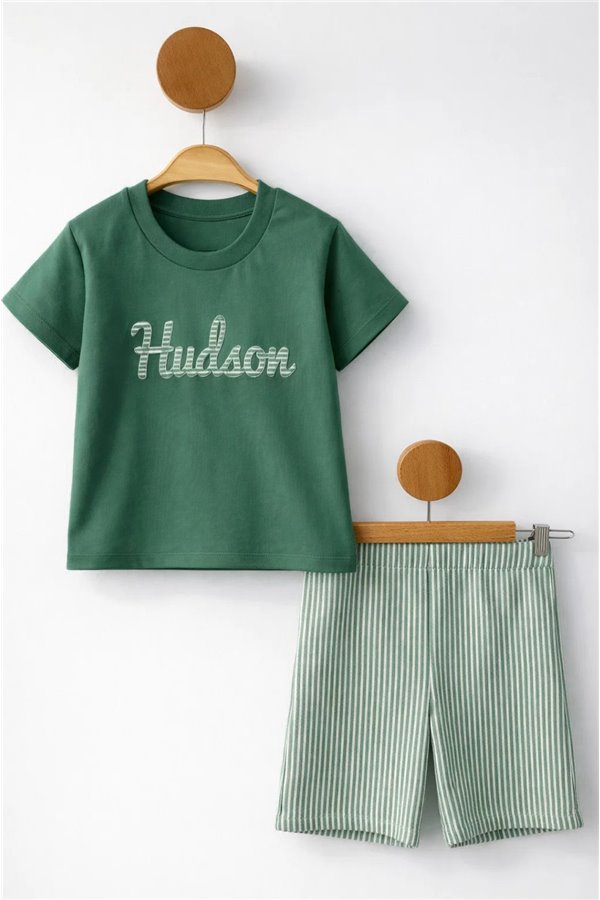 2-9 Yaş Yazlık Erkek Çocuk Takım Hudson Yazılı Yeşil