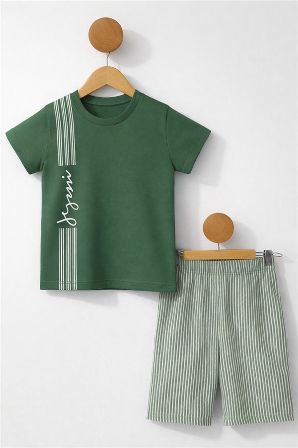 2-9 Yaş Yazlık Erkek Çocuk Takım Yazı Baskılı Yeşil