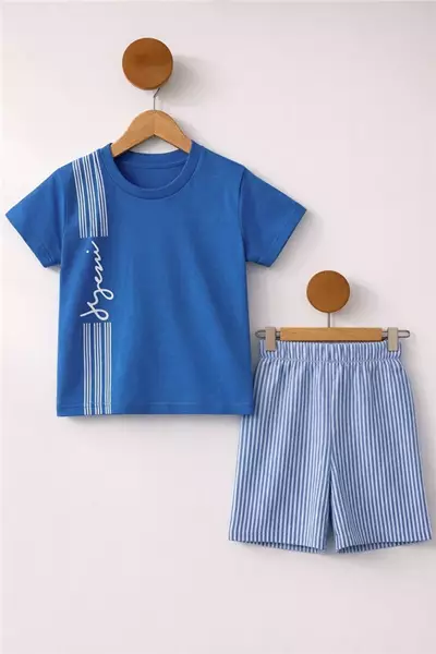 2-9 Yaş Yazlık Erkek Çocuk Takım Kamuflaj Desenli Mavi