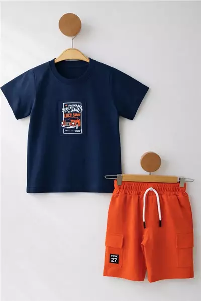 3-4-5-6 Yaş Araba Baskılı Erkek Çocuk Takım Turuncu