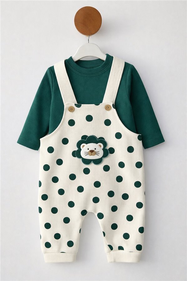 6-24 Ay Aslan Nakışlı Waffle Bahçıvan Tulum Koyu Yeşil