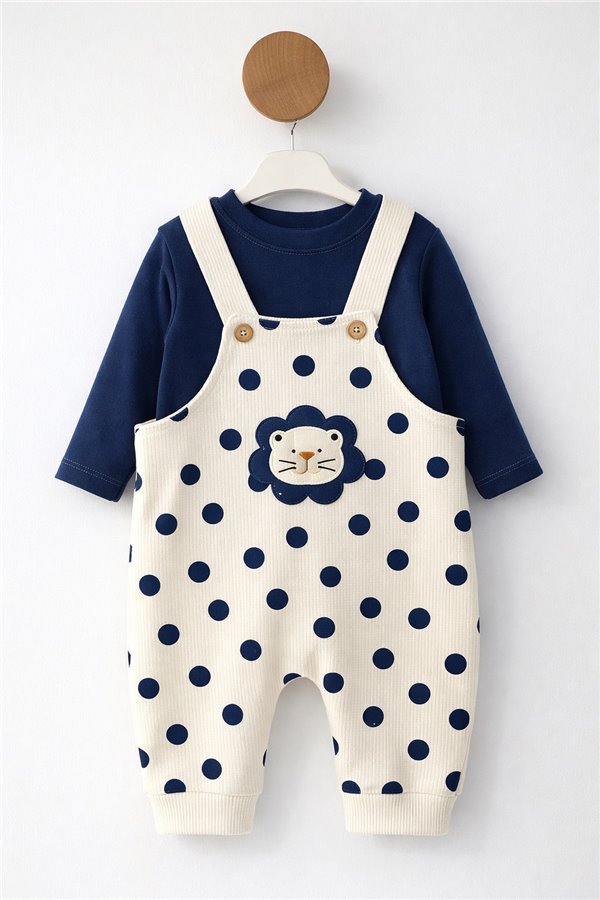 6-24 Ay Aslan Nakışlı Waffle Bahçıvan Tulum Lacivert