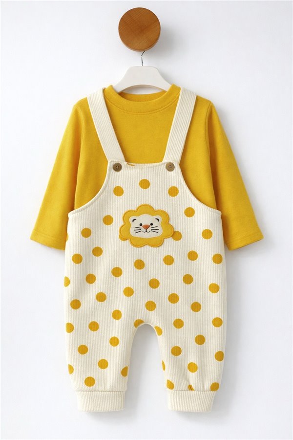 6-24 Ay Aslan Nakışlı Waffle Bahçıvan Tulum Sarı
