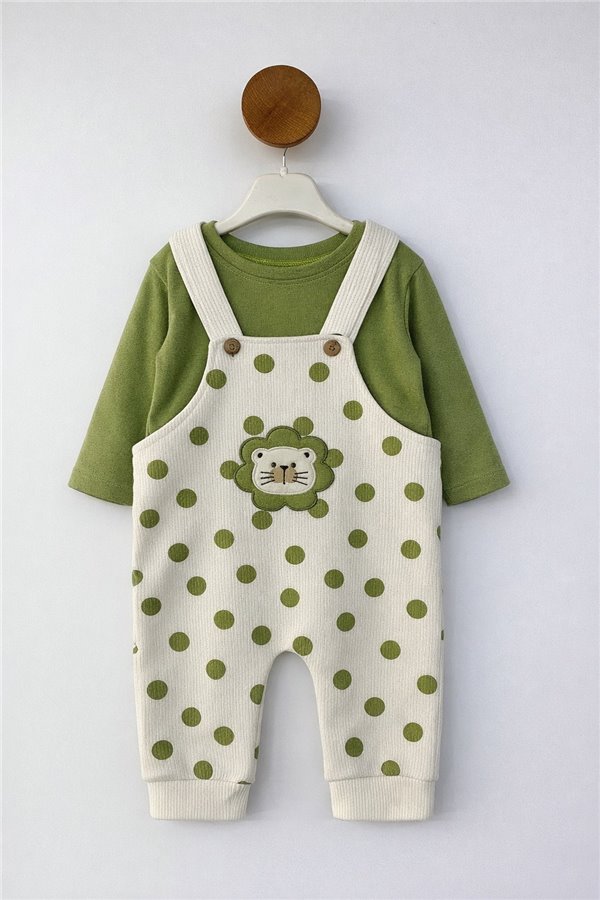 6-24 Ay Aslan Nakışlı Waffle Bahçıvan Tulum Yeşil